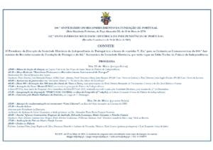 844.º ANIVERSÁRIO DO RECONHECIMENTO DA FUNDAÇÃO DE PORTUGAL (Bula Manifestis Probatum, do Papa Alexandre III, de 23 de Maio de 1179) 162.º ANIVERSÁRIO DA SOCIEDADE HISTÓRICA DA INDEPENDÊNCIA