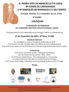 COMEMORAÇÕES D. PEDRO VITO DE MENEZES (1775-1823), 8º CONDE DE CANTANHEDE E 6º MARQUÊS DE MARIALVA, E O SEU TEMPO Evocação Histórica no II Centenário da sua morte 4ª Sessão: Colóquio “O Marquês de Marialva no contexto político constitucional coevo”