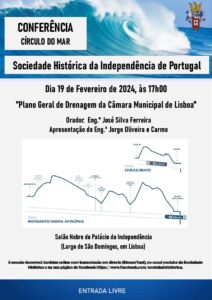 Agenda Cultural Conferências / Colóquios 19-02-2024 | 17:00 a 19-02-2024 | 19:00 | Salão Nobre - Palácio da Independência CÍRCULO DO MAR-CONFERÊNCIA: PLANO GERAL DE DRENAGEM DA CÂMARA MUNICIPAL DE LISBOA programa Deixe um comentário Cancelar resposta Guardar o meu nome, email e site neste navegador para a próxima vez que eu comentar. Send Comment