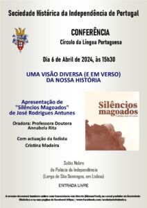 Agenda Cultural Conferências / Colóquios 06-04-2024 | 15:30 | Salão Nobre - Palácio da Independência CÍRCULO DA LÍNGUA PORTUGUESA- UMA VISÃO DIVERSA ( E EM VERSO) DA NOSSA HISTÓRIA programa Deixe um comentário Cancelar resposta Guardar o meu nome, email e site neste navegador para a próxima vez que eu comentar. Send Comment